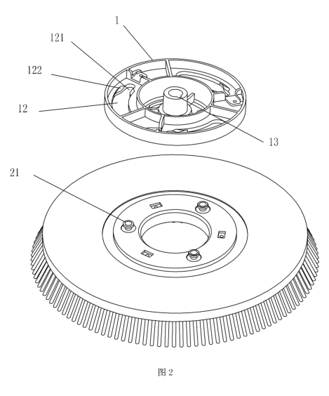 旭潔洗地機刷盤的安裝方法是:使用刷盤升降踏板升起刷盤座,將刷盤放到刷盤座中央,向上貼合刷盤座,向左旋轉(zhuǎn),待刷盤裝好,啟動刷盤開關(guān),刷盤轉(zhuǎn)動,完成裝刷操作。目前市場上所有洗地機品牌基本都是通過類似的電機導(dǎo)向?qū)崿F(xiàn)刷盤固定座與刷盤的自動對位,在對位的過程中,刷盤固定座與刷盤的安裝端面剛性碰撞,會產(chǎn)生強烈的碰撞對位噪音,影響操作者使用舒適性。為了提高用戶體驗,旭潔新型洗地機進行了研發(fā)和改善。